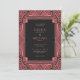Ces élégantes invitations de mariage vintage à plat de 5" x 7" présentent un design orné en rose saumon sur un arrière - plan noir à la texture motif caché entre les deux. Le dos a le même motif muet. Les espaces réservés comprennent une introduction, le prénom et le nom du couple mariage, la date, l'heure, le lieu, l'adresse du lieu et l'information sur la réception.