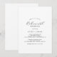 Cette élégante invitation à dîner de répétition de script est parfaite pour une simple répétition de mariage. Le design minimaliste noir et blanc présente une typographie romantique avec style glamour moderne. Personnalisable dans n'importe quelle couleur. Gardez le design minimal et élégant, tel quel, ou personnalisez-le en ajoutant vos propres graphiques et artwork.