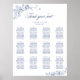 Élégant Écriture de calligraphie 12 Tableau Rose Mariage de table Tableau de siège. Vintage Royal Blue Floral 12 Table Mariage Bienvenue Panneau de siège