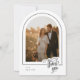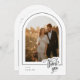 Une élégante et moderne carte de remerciements en arc de cercle, avec un texte "merci" et des bordures élégantes autour de vos photos. Personnalisez le modèle avec vos initiales, votre date de mariage, votre message et vos photos. Tout le texte, les éléments et les couleurs arrière - plans sont modifiables afin que vous puissiez créer une carte personnalisée qui correspond parfaitement à votre photo. © Kimbellished, LLC
