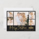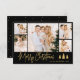 Calligraphie moderne noir et or élégant Script 5 Photo Collage Cartes de Noël. Cette carte de voeux festive et minimaliste de cinq (5) jours fériés photo présente un joli collage photo, 3 pin doodle, "Joyeux Noël" texte de bienvenue qui est écrit dans une fantaisie lettre à la main type signature en noir et or. Sur le côté inverse des points enneigés motif avec une belle photo de famille. Jolie carte de voeux pour votre famille et vos amis en hiver.