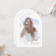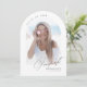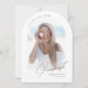 Faire-part de graduation simple en noir et blanc dispose de 2 photos avec script moderne et forme arc, élégant et amusant, Personnalisé avec votre propre photo et informations de la grande fête à l'arrière.