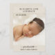 Elégante carte de faire-part de naissance bébé avec photo de votre bébé encadrée par un simple design de burlap beige et vos propres textes (script ou autre style). Il s'agit d'une conception neutre du point de vue du genre.