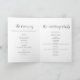 Ajoutez une élégance intemporelle à votre cérémonie avec ce programme de mariage noir et blanc avec des en-têtes de script chic et une typographie propre et facile à lire. Parfait pour les mariages classiques, formels ou modernes, ce programme plié comprend des sections pour l'ordre de cérémonie et les détails du mariage. Le design minimaliste garde l'accent sur votre célébration tout en conservant un aspect raffiné et poli. Customisez avec vos coordonnées de mariage pour créer un souvenir que vos invités chériront.