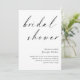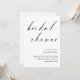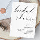 Célébrez la future mariée avec cette invitation sophistiquée et minimaliste à la douche nuptiale. Doté d'un élégant script manuscrit, ce design dégage un charme moderne et une simplicité intemporelle. Les couleurs classiques noir et blanc en font un choix parfait pour les douches nuptiales contemporaines, chic et formelles. Cette invitation est entièrement personnalisable : mettez à jour facilement le nom, la date, le lieu et les détails RSVP de la mariée pour en faire la vôtre. Imprimé sur papier de haute qualité, il vous garantit une touche de luxe pour votre célébration spéciale. Idéale pour des douches nuptiales modernes, élégantes ou monochromes, cette invitation design donne le ton parfait pour un événement de classe.