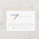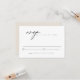 Cette carte RSVP de mariage est dotée d'une police de script de calligraphie élégante et d'un design minimaliste moderne avec une carte postale couleur crème en option à l'arrière pour faciliter l'envoi. Modifiez facilement le libellé de votre événement. Ce RSVP est parfait pour votre simple événement classique. Modifiez facilement la couleur à l'arrière pour correspondre à n'importe quel jeu de couleurs et ajoutez une adresse de retour pour faciliter l'envoi sans enveloppe supplémentaire.
