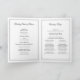Créez un programme de mariage customisé plié à l'aide de ce design modèle avec un texte de script de calligraphie qui met en évidence le devant du programme avec un modèle de texte spécial pour personnaliser avec vos informations détaillées. Vous pouvez ajouter ou supprimer des lignes de texte selon vos besoins pour adapter le texte souhaité. Modifiez le modèle de texte avec vos détails, puis choisissez "cliquer pour customiser plus loin" pour déplacer le texte selon les besoins ou apporter d'autres modifications.