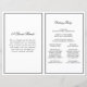 Créez un programme de mariage customisé plié à l'aide de ce design modèle avec un texte de script de calligraphie qui met en évidence le devant du programme avec un modèle de texte spécial pour personnaliser avec vos informations détaillées. Veuillez noter que cet article est imprimé sur papier plat que vous devrez plier. Vous pouvez ajouter ou supprimer des lignes de texte selon vos besoins pour adapter le texte souhaité. Modifiez le modèle de texte avec vos détails, puis choisissez "cliquer pour customiser plus loin" pour déplacer le texte selon les besoins ou apporter d'autres modifications.