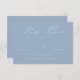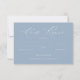 Ce script élégant bleu simple mariage RSVP cartes de réponse comprennent la calligraphie dainty et la typographie serif classe, parfait pour votre mariage à thème bleu.