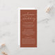 Élégant Script En Terracotta Programme De Mariage Moderne. Personnalisez ce programme de mariage simple et moderne pour votre mariage minimaliste ou élégant. Le design polyvalent est parfait pour n'importe quel thème mariage avec votre commande de service et calendrier, la fête de mariage et merci inclus.