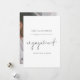 Élégant Script Photo Fiançailles Faire-part Un design noir et blanc simple et élégant pour annoncer vos bonnes nouvelles. Le fiançailles est dans un script moderne est au centre.Le reste du texte vous pouvez facilement personnaliser et remplacer l'exemple photo au dos par votre propre. Les couleurs du texte et de l'arrière - plan peuvent être modifiées si vous souhaitez mieux convenir à votre thème mariage via l'option customiser plus loin.