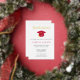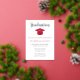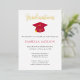 Ce faire-part de graduation comporte un casquette rouge et des feuilles d'or. Tout le texte à l'avant et à l'arrière est modifiable. Ajoutez une photo à l'arrière de la carte pour créer une invitation de graduation vraiment unique.