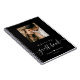Élégant Script Heart personnalisé Photo Mariage Livre d'invité en noir et blanc. Caractéristiques du texte moderne "livre d'invité" en calligraphie à la main, date mariage et couple prénom avec forme coeur d'amour. Customisez avec votre photo préférée et personnalisez vos informations. Il est idéal pour un jour mariage ou anniversaire.