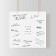 Cette affiche de signature élégante de mariage de script est parfaite pour un mariage simple. Le design minimaliste noir et blanc présente une typographie romantique avec style glamour moderne. Personnalisable dans n'importe quelle couleur. Gardez le design minimal et élégant, tel quel, ou personnalisez-le en ajoutant vos propres graphiques et artwork. Demandez à vos invités de signer l'affiche comme alternative à un livre d'or traditionnel, puis de le cadrer et de l'afficher chez vous. Personnalisez l'affiche avec vos noms et votre date de mariage. Cette affiche est disponible en plusieurs tailles et types de papier différents. L'affiche de 24" x 24" peut contenir entre 150 et 200 signatures.