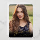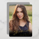 Cette véritable feuille, moderne et élégante carte de faire-part de graduation, présente des éléments de design du texte moderne fusionné avec un élégant script de calligraphie. La photo horizontale des diplômés est placée avec art sur le devant de la carte tandis que le dos de la carte offre des espaces de texte personnalisés pour des informations sur la graduation et le futur voyage. Les Arrière - plans sont en tendance dégradé foncé sur l'avant et gris argenté sur le dos ou customisent facilement le dos de la carte à une couleur de votre choix. Pour voir d'autres articles comme celui-ci, visitez mon magasin ici à "www.Zazzle.com/LakeViewCardCo". Merci