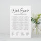 Profitez de votre douche nuptiale ou de votre soirée bachelorette avec cette carte de jeu personnalisable! COMMENT JOUER - Donnez à chaque invité une carte de recherche de mots avec des mots liés au mariage, tels que Mariée, mariée, robe mariage, bouquet, anneaux et voeux, et leur donner un stylo. -Fixez une limite de temps pour trouver tous les mots du puzzle, par exemple 5 ou 10 minutes. -Une fois le délai écoulé, passez en revue le puzzle avec les invités et demandez-leur de partager les mots qu'ils ont trouvé qui ne figurent pas sur la liste. -Vous pouvez avoir plusieurs versions avec des mots différents pour éviter que les clients partagent des réponses, ou envisager de faire travailler les invités en équipe, surtout si vous avez un grand groupe.