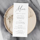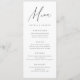Conception minimaliste de menu moderne en noir et blanc fusain, simple et élégant. Cartes de menu mariage pour mariage moderne et autres événements. Voir toutes les pièces correspondantes dans la collection.