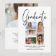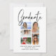 Élégant Script Multi Photo Graduation Faire-part comprend cinq de vos photos préférées de votre diplôme d'études supérieures ou secondaires avec le script moderne tourbillonnant de calligraphie noire superposition "Graduate". Personnalisez en modifiant le texte dans les zones de texte fournies. Simple, élégant et classe. Créé par ©Evco Studio www.zazzle.com/store/evcostudio