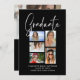 Élégant Script Multi Photo Graduation Faire-part comprend cinq de vos photos préférées de votre diplôme d'études supérieures ou secondaires avec le tourbillonnant script moderne de calligraphie blanche superposition "Graduate". Personnalisez en modifiant le texte dans les zones de texte fournies. Simple, élégant et classe. Créé par ©Evco Studio www.zazzle.com/store/evcostudio