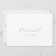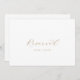 Cet élégant panneau en or réservé est parfait pour un mariage simple. La carte est recto-verso (tirages sur les deux côtés). Le design minimaliste or et blanc présente une typographie romantique avec style glamour moderne. Personnalisable dans n'importe quelle couleur. Gardez le design minimal et élégant, tel quel, ou personnalisez-le en ajoutant vos propres graphiques et artwork. Utilisez ces cartes pour réserver des chaises ou des tables lors de votre cérémonie de mariage, de votre réception ou de tout événement.