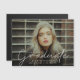 Cette combinaison moderne et élégante d'invitation à la remise de diplômes de photographie élégante comprend une superposition de script et un nom personnalisable, l'école et la photo sur le devant. L'arrière-plan offre des fêtes et des détails de l'événement avec 3 photos supplémentaires. Une excellente façon de présenter votre diplômé.