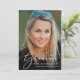 Célébrez les réalisations de votre diplômé avec cette élégante faire-part de remise de diplômes et l'invitation de la fête. Sa photo remplit le devant, superposée de "Graduate" dans un script blanc élégant ; en dessous, ajouter son nom, son école et son année de classe. Au verso, ajoutez une photo supplémentaire et les détails de la fête de remise de diplômes.