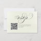 Timeless and elegant wedding RSVP response card featuring a beautiful calligraphy script and a convenient QR code for easy online replies. Designed with soft neutral tones and a minimalist layout, this card is perfect for classic, romantic, or modern weddings. A stylish way to simplify guest responses while keeping your wedding stationery suite cohesive and refined. Fully customizable to match your special day.