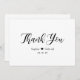 Mariage de script moderne, élégant, noir et blanc à la main. Le modèle de carte de remerciements élégant non-photo mariage dispose d'un type de police de calligraphie d'écriture de texte "Merci" à la main assez tourbillonnant. Petit coeur d'amour mignon entre le nom de la mariée et celui du marié. Personnalisez votre nom et merci message. Si vous préférez écrire votre note à la main, supprimez simplement l'exemple de texte pour gagner de l'espace. Idéal pour un mariage minimaliste et élégant.