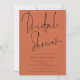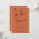 Élégante Fête des mariées en terre cuite Script. Disponible numériquement ou imprimé. Ce design moderne en terre cuite pour vos Fêtes des mariées Invités a établi un script élégant pour la Fête des mariées en haut et facilement personnaliser avec vos détails en dessous. Vous pouvez également modifier les couleurs du texte et de l'arrière - plan de chaque côté si vous le souhaitez via l'option Customiser plus.