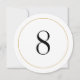 Numéro de table noir et blanc classique sur votre choix de papier avec cercle découpé et bordure en faux or. Plusieurs types de papier, carré ou angles arrondis sont également disponibles.