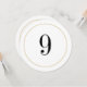 Numéro de table noir et blanc classique sur votre choix de papier avec cercle découpé et bordure en faux or. Plusieurs types de papier, carré ou angles arrondis sont également disponibles.