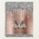 Parties scintillant argent de luxe goutte nom personnalisé et monogrammed 2022 ou n'importe quel planificateur d'année. Ce design présente des gouttes de parties scintillant gris argenté (gris) sur arrière - plan métal brossé rose rose faux rose avec initial personnalisé, monogramme et modèle de texte de prénom. Un cadeau personnalisé parfait pour les filles. Grand cadeau pour l'école, le travail professionnel, le bureau à domicile. Veuillez noter que ce design est un effet photo imprimé sans réelle parties scintillant.