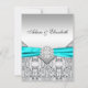 Élégant diamant, argent et faire-part de mariage bleu turquoise.
