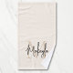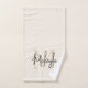 This hand towel features a modern, elegant monogram and name in stylish script calligraphy on a neutral beige background. It is easily customizable.