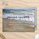 Une invitation à la douche nuptiale élégante mais simple, avec des vagues sur la plage à l'avant et un design bleu poussiéreux à l'arrière.