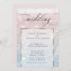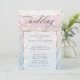 Faire-part de mariage | Eaux océaniques scintillantes et scintillantes au soleil couchant - dans des tons pâles de rose rose poussiéreux et bleu poussiéreux - le texte apparaît sur un cadre doré brillant blanc qui montre le design mais permet de lire facilement le texte. Accentué par une belle calligraphie manuscrite élégante. Facile à personnaliser modèle mariage.