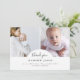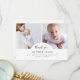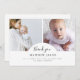 Cette belle carte de remerciement photo intemporelle est idéale pour tous ceux qui veulent remercier les invités à leur baby shower pour les cadeaux, l'amour et le soutien qu'ils ont reçus et pour présenter leur petit au monde. Le design moderne, élégant et élégant est minimaliste. Il comprend deux photos personnalisables placées dans le centre, jointes par un "merci" en calligraphie classique placée sous une arche, et une typographie élégante pour vos informations, comme le nom du bébé, la date de naissance, etc. Au verso se trouve votre message de remerciement personnalisable avec vos noms. Utilisez le bouton "personnaliser" pour remplacer les photos et modifier le texte.