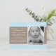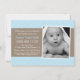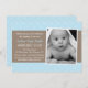 Famille Invitation et amis pour assister au baptême ou au baptême de votre bébé avec cette invitation élégante, classe et élégante au baptême. Ce design subtil est en bleu et marron avec un motif damassé pour l'arrière - plan et l'espace pour la personnalisation photo du petit. A l'envers, une colombe volante. Personnalisez facilement avec les détails de l'événement.