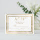 Elegant stylish modern white and gold frame Wedding RSVP invitation. This luxury gold and white wedding invitation party is perfect for the sophisticated glam girl. This design is perfect for a trendy and stylish party event. Customize this design with your message and personalized information. All designs are printed.