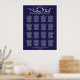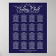Faites de votre réception de mariage une belle avec ce tableau de sièges. Conçu dans le cadre de notre Silver & Navy Elegant Wedding Suite, il présente un design simple mais élégant avec du texte blanc sur un arrière - plan bleu marine avec une bordure florale en faux feuille argent. Ce graphique montre les affectations de table afin que vos invités aient un temps facile à trouver la bonne table.