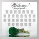 Présentez votre réception de mariage avec style avec ce magnifique tableau de 29 sièges de table orné d'un design classique avec un seul rose profond vert émeraude à long tige allongé sur son côté, reflétant magnifiquement dans l'eau. L'élégante lettre de script accueille les invités avec le message "Bienvenue! S'il vous plaît trouver votre table" et a de l'espace pour 290 noms ou invités avec dix sièges par table, accompagné du nom du couple et la date du mariage en bas. Ce tableau exhale le raffinement, le style et l'élégance romantique, ce qui en fait un merveilleux moyen d'ajouter une touche de glamour à votre journée spéciale tout en aidant vos invités à trouver leur siège avec facilité.