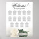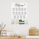 Cet élégant tableau de sièges de mariage comporte 14 tables et présente un design romantique, sophistiqué et magnifique. Avec des assignations de table pour 140 invités et 10 sièges par table, ce tableau fournit les arrangements de sièges pour votre réception de mariage. Le design se compose d'un seul rose couleur ivoire, blanc ou crème, allongé sur son côté et réfléchissant dans un bassin d'eau. Le titre, "Bienvenue! s'il vous plaît trouver votre table," est écrit en calligraphie de script sophistiquée, tandis qu'il y a de l'espace disponible pour les noms du couple et la date mariage en bas. Ce tableau de sièges est une façon merveilleuse d'ajouter beauté, classe et style à votre réception de mariage tout en facilitant la recherche de sièges par vos invités.