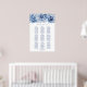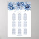 Aidez vos invités à trouver leur table avec cet élégant tableau de sièges bleu fleuri. Il convient à un mariage de 9 tables et 90 couverts.