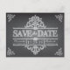 Des tourbillons complexes, des rouleaux et du texte, dessinés avec un effet craie, et placés sur un arrière - plan de tableau noir, le tout se combine pour faire une belle et élégante carte postale Save the Date mariage.