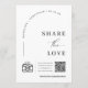 Bienvenue et saluez vos invités et leur dire de partager l'amour avec cette carte de numéro de table minimaliste moderne et sophistiquée et élégante. Cette carte de numéro de table minimaliste minimaliste et simple, élégante et moderne, pour les mariages, est parfaite pour voir s'ils sont assis à la bonne table et demander s'ils pourraient partager l'amour en prenant des photos de vous — les jeunes mariés lors de votre journée spéciale ! La carte de numéro de table comporte une police de typographie et de calligraphie de bloc simple et propre, en forme d'arc, sur un arrière - plan blanc et QR Code et hashtag. La simplicité de ce design ajoute une touche d'élégance à votre mariage et fonctionne bien avec tous les thèmes mariages et certainement un grand ajout à votre mariage. Il suffit de customiser les noms, le numéro de table, la date du mariage et l'emplacement en quelques étapes simples et de personnaliser le libellé du numéro de table de l'arrangement de siège avec hashtag et de taper dans le code QR et de numériser les informations pour donner à votre carte de numéro de table une touche personnelle agréable. Remarque : La calligraphie élégante du libellé "le mariage de" et "partager l'amour" et le graphique de la caméra photo avec les lignes et autres éléments d'illustration graphique et les mots ne peuvent pas être modifiés, supprimés, ou déplacés. Elles sont réparées. Si vous devez modifier la couleur, vous pouvez customiser la carte de numéro de table du tableau de sièges. Vous pouvez customiser et personnaliser la carte de numéro de table pour répondre aux besoins de votre événement mariage et cliquez simplement sur customiser la carte.