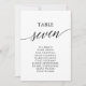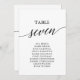Ces élégantes cartes de table noire numéro 7 sont parfaites pour un mariage simple. Le design neutre présente une carte minimaliste décorée de typographie romantique et fantaisiste. La carte s'imprime à l'avant et à l'arrière (double face).