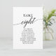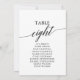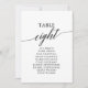 Ces élégantes cartes de table noire numéro 8 sont parfaites pour un mariage simple. Le design neutre présente une carte minimaliste décorée de typographie romantique et fantaisiste. La carte s'imprime à l'avant et à l'arrière (double face).