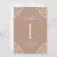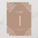 Elégant Taupe Mariage Numéros de table : Utilisez ces numéros de table vintages et classiques à votre réception de mariage ou événement. Ce design comprend le mot "Table" dans une calligraphie élégante avec un design orné de coins vintages pour un look luxueux. Il est en taupe / beige / tan, mais vous pouvez changer la couleur à tout ce que vous voulez! Cliquez simplement sur "customiser plus" et changez la couleur arrière - plan.