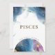 Profitez d'un thème de constellation céleste avec nos panneaux de constellation. Carte de nom de la constellation avec des colorants d'aquarelle exquis et carte du globe céleste avec constellations sur le devant. Le dos avec une belle aquarelle galaxie design avec la constellation Pisces au centre. Design avec des teintes bleu, bleu marine, turquoise, violet, magenta, fuchsia et doré. Une partie d'une collection avec de nombreuses cartes de nom de table disponibles, ainsi que des cartes de sièges, des panneaux de plan de sièges, des menus, et plus encore. Si vous avez besoin d'un autre nom de constellation qui n'est pas disponible sur notre collection, n'hésitez pas à modifier le nom en utilisant la zone de texte du tableau fournie, afin que vous puissiez compléter votre collection.