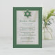 Cette élégante invitation Bar Mitzvah en tissu donne le ton de la grande journée de votre fils. La bordure est dotée d'une palette à tendance constante avec un contour au crayon mince dans une couleur complémentaire. Une étoile de David ancre le design et un beau tissu blanc éclaire dans le arrière - plan. Et toutes les informations imprimées peuvent être customisées avec le nom de votre fils et la date de l’événement... il suffit de remplir les champs ! Il s'harmonise parfaitement avec l'Elegant Fabric Bar Mitzvah Invitation Reply Card.